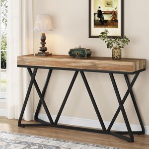 Enhance your home decor with our elegant Wood Console Table with Metal Legs, a perfect fusion of rustic charm and modern sophistication. This versatile piece is designed to elevate the aesthetic of any room while providing practical storage and display space. Crafted from high-quality, sustainably sourced chipboards which have TSE and FSC certificates, the tabletop boasts a rich, natural grain finish that adds warmth and character to your space. The console table has sturdy metal legs painted with decorative powder preventing rust and discolouration offering a sleek, contemporary contrast to the wooden top, while ensuring stability and durability for everyday use. Ideal for use in your entryway, living room, or hallway, this console table is perfect for displaying decorative items, holding essentials, or serving as a stylish accent piece. With a slim profile, and 2 shelves this table fits perfectly against walls and can hold many items, making it an excellent choice for small and tight hallway or living room spaces. Borough Wharf Colour: Beige/Black