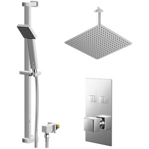 Model Number: WDB74845 Elevate your bathing experience with the Cubix Polished Chrome Concealed Triple Thermostatic Shower Valve and 200mm Square Head with 150mm Ceiling Arm and Outlet Holder. This modern shower system is meticulously designed to provide both style and functionality, ensuring a luxurious and relaxing shower every time. With its sleek polished chrome finish and contemporary square design, the Cubix range adds a touch of elegance to any bathroom decor. Featuring a triple thermostatic valve, this shower kit offers precise temperature control, allowing you to set your desired water temperature without the fear of sudden fluctuations. The 200mm square shower head delivers a generous water flow, creating a refreshing rainfall-like experience that revitalises your senses. Designed to accommodate two outlets, this system provides versatility, enabling you to switch between the overhead shower and a handheld option, catering to your every need. The Cubix shower system is