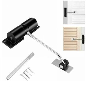 QUIET AND SAFE - The device automatically turns off and locks to ensure peace and safety. During breaks, you don't have to worry about your children running away from home or your dog or cat entering your room. EASY INSTALLATION: With the door closer and the surface mounting of the plastic slide, installation is a breeze. (There is a detailed installation manual in the box, make sure there is no problem with the installation). This spring door closer can be used on doors up to 150 lbs and can be used on both left and right doors. High quality: Antioxidant, anti-corrosion, weather-resistant, stable, wear-resistant, quiet, safe. Quality assurance: More than 500,000 switching tests, salt spray corrosion test of 72 hours minimum, 100% inspection. INCLUDE - Surface mounted spring door closer with instructions, pull rods, slides and plugs to cover the adjustment holes on the closer body after setting the desired tension. Product information Name: Automatic Spring Door Closer Suitable for