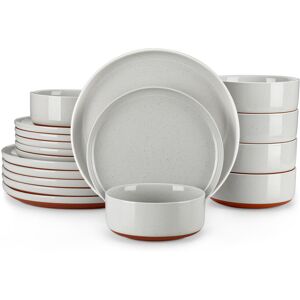 The plates and bowls set is the ultimate combination of style, functionality, and versatility. This dinner set made of 100% lead-free glaze and no need to worry about harmful substance leaching into your food. Bright and dreamy colors enhance the luxury of these durable stoneware tableware to feast your guests' eyes and set the tone for a pleasant meal. Each dish set is made of high-quality stoneware that is dishwasher and microwave safe.The plate set is easy to clean and easy care. The dishes are service for six people, including dinner plates, salad plates and cereal bowls. Brayden Studio Colour: Deep Forest