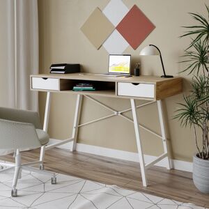 The Kolton Mid-Century Writing Desk is a timeless piece that seamlessly blends classic design with modern functionality. Crafted with a wooden carcass, this desk exudes natural warmth and durability. Choose from two stylish color combinations: a sleek black drawer and leg set for a contemporary look, or a crisp white set for a more minimalist aesthetic. The generous tabletop provides ample space for your laptop, books, and writing materials, while the two spacious drawers offer convenient storage for your essentials. The desk's mid-century design, characterized by clean lines and timeless beauty, adds a touch of sophistication to any home office or study. Whether you're a student, a remote worker, or simply someone who appreciates beautiful design, the Kolton Mid-Century Writing Desk is the perfect choice. Its elegant form and practical features make it a versatile addition to your living space. Invest in a piece that will stand the test of time. The Kolton Mid-Century Writing Desk is not just a piece of furniture; it's a statement of style and functionality. George Oliver Frame Colour: Black