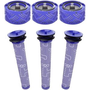 Compatibility: Compatible with Dyson V6 DC58 DC59 DC62 DC72 DC74 SV03 SV04 SV05 SV06 SV07 SV08 SV09 cordless vacuum cleaners Air Filtration: The HEPA pre- and post-filters are made of high-quality and environmentally friendly porous fabric, have been thoroughly tested by the manufacturer, and offer sufficient retention, higher efficiency, and the best quality for excellent performance and a longer service life. Washable and Reusable: We recommend replacing the filter every 2 to 3 months, but this usually depends on how often you use it. In addition, the vacuum cleaner filters can be hand-washed in warm water and dried completely before use. Package Contents: 3 Pre-Motor Filters 3 Post-Motor Filters