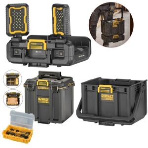 This pack contains both the DWST08061-1 ToughSystem 2.0 18V Task Box & Light combined plus the Dewalt DWST83470-GB TOUGHSYSTEM 2.0 Charger Toolbox. The Dewalt DWST08061-1 ToughSystem 2.0 18V Task Box & Light combined both a unique lighting solution and a storage box both on the Dewalt Toughsystem platform. In terms of storage, this open tote follows in the footsteps of other recent Dewalt ToughSystem 2.0’half width’ cases. Ideal for carrying huge range of power tools, hand tools and much more, the tote include ToughSystem connectivity on the base side, so that you can easily connect to others within the range thanks to the Auto-Latch Side Staking latches. The tool box has visible IP65 water seals to prevent dust and water from entering the case when being transported thereby protection your tools from the elements. The lid of the case is where it gets clever. Working together with the case or independently, two bright LED light panels brings illumination to any work area. Whether you