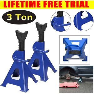 Features: �� High quality strong, sturdy axle stands pair. �� Each axle stand is rated up to 3 ton load capacity. �� Ratchet adjustable for quick, easy height adjustment. �� Perfect for most automotive maintenance and repair jobs. �� Simple strong and functional design. �� Conforms to TUV/GS safety standards. �� Safety locking system. �� Large base for added stability. �� Long, lasting and durable construction for a long service life. Characteristics: �� robust welded construction �� perfect as a car jack or for other purposes in the workshop �� 9-stage height adjustment thanks to rack �� Ideal for any hobby workshop �� four splayed supports for a secure stand �� wide adjustable feet - gentle on the workshop floor, offers maximum safety �� quick height adjustment by one-hand lever Technical details: Dimensions (L x W x H): approx. 190 x 200 x 235 mm Material: steel and cast iron Color: blue with black stamp 9-stage height adjustment thanks to the toothed rack Weight per jack: approx.