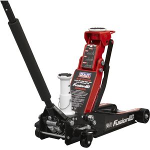 Sealey Low Profile High Lift Trolley Jack with Rocket Lift 2/3 Tonne Features: This 3-in-1 trolley jack, has a lifting span which is quickly and easily adjusted, giving the advantages of a low entry, high lift and super high lift trolley jack all in one. Lifting range from a minimum saddle height of just 98mm for low chassis vehicles, to a maximum saddle height of 770mm suitable for SUVs and for extreme off-road vehicles. Reinforced lifting arm and solid u-channel side plates keeps lift strong and secure. Rocket lift cast iron pump with twin pistons bring the lifting arm into contact with the jacking point in minimal pumps. Long 2-piece handle, to reduce operator effort, supplied with foam bumper to protect bodywork. Rubber pads fitted to both saddles to prevent damage to the underside of the vehicle's jacking point. Heavy-duty 360° castors and large saddle design for easy positioning under vehicle. Technical Details: • This 3-in-1 trolley jack, has a lifting span which is quickly and