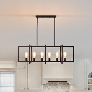 Chandelier Size —— Length: 109 cm / 43 inches, height: 35 cm / 13.7 inches, width: 29 cm / 11.4 inches. Ceiling canopy size: 40* 12* 2.5 cm. Decorate the room by adjusting the pendant light to your preferred height through 3 poles. Use E27 bulbs —— Requires 6 x E27 base Max. 60 W Bulbs ( NOT Included ), can use incandescent bulbs, LED bulbs, halogen bulbs, Edison bulbs, etc. Temperature adjustable when paired with dimmable bulb and compatible dimmer switch ( NOT included ). Farmhouse Style —— Country type design and open design vision for your space to bring more enjoyment. Simple streamlined and matte metal geometric frame construction, it won't block light or cast shadows on the walls. Scope of application —— Modern look light fixture will hang from your interior ceiling to provide lighting. ( Including pitched ceiling ) Suitable for dining room, kitchen island, living room, lounge, reception room, foyer, corridor, balcony, farmhouse, pub, cafe and so on. Easy to install —— Assemble