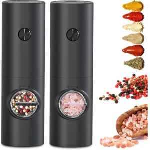 【Electric Salt and Pepper Grinder Kit】This set includes two grinders, one for salt and one for pepper. After grinding, the included brush can be used for cleaning without the need for water. 【Special Design】The electric salt and pepper grinders feature a convenient front-opening compartment cover, making it easy to add spices. The transparent compartment allows you to clearly see the remaining amount of pepper or salt. 【Professional Electric Salt and Pepper Grinders】The electric salt grinders are equipped with adjustable ceramic grinders, offering advantages such as high hardness, wear resistance and long service life. You can manually adjust the grinding fineness according to your preferences. Once the spices are added, gently press the start button and the built-in LED lights will automatically light up, making the grinding process clearly visible. 【Versatility-Electric Grinder】The electric pepper mill is compact and portable, perfect for use in the kitchen, at parties, in