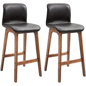 Let sleek and executive style make an impact beyond the office with these bar stools from HOMCOM. A set of two to create a matching look in your home, each chair is built with a solid and strong beech wood frame, crafted into a tall design with a bar on the bottom to place your feet. A relaxed seat, filled with foam for comfort and faux leather upholstery all over for sleek style. Specifications: • Colour: Dark Brown, Natural • Materials: Beech wood, PU leather and sponge • Overall dimension: 93H x 40D x 46Wcm • Seat dimension: 35W x 28D x 67Hcm • Back dimension: 26H x 40W x 4Tcm • Footrest to floor: 20.5Hcm • Weight capacity: 120kg per chair • Item label: 835-161V70DR Features: • Suitable for bar table height of 90-95 cm • Set of two stylish and tall bar stools • Solid beech wood frame, ensures a tough and sturdy structure, with a foot rest bar on the bottom • Slightly curved seats for a relaxed look, filled with foam for comfort • Faux leather upholstery is smooth and stylish • Foot